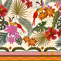 ImageOnça Tropical ImageCorações Coloridos ImageCoqueiros Barrados ImageBambu Areia ImageAraras Azuis ImageAraras Abacaxi